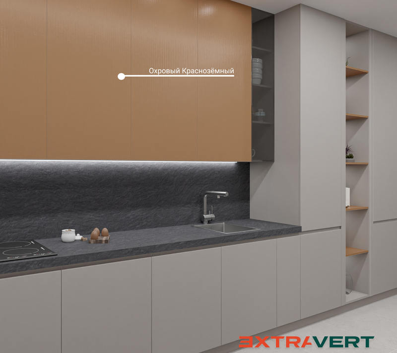 - Охровый краснозёмный — тёплый, насыщенный оттенок, который добавляет пространству глубину и мягкое визуальное тепло