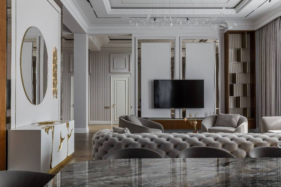 Авторы проекта для дома многодетной семьи площадью 650 м² в Ростове-на-Дону хотели создать статусное но живое, а не музейное пространство, объединить простор и функциональность с уютом, наполнить его светом и ощущением тихой роскоши. Элегантная лаконичность мебели формирует характер интерьера, лёгкого и изысканного в деталях.